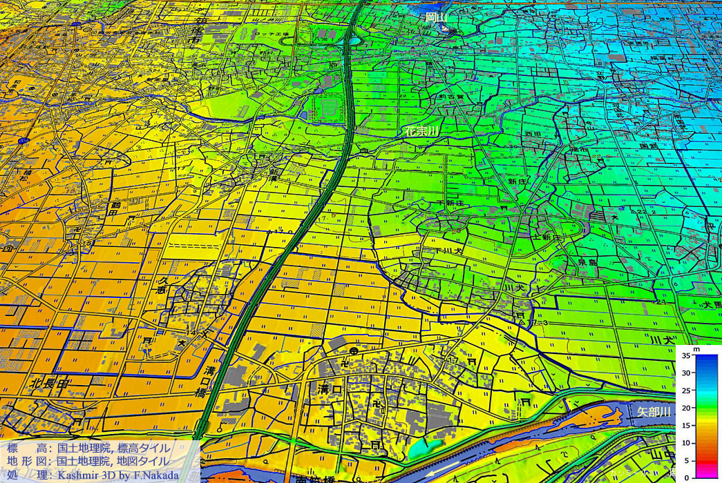 | 地形(標高段彩図)と治水地形分類図の三次元イメージ |