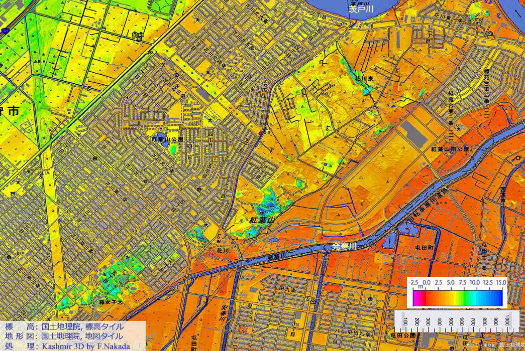 段彩図上で1回クリックすると,国土地理院の「治水地形分類図・更新版(出典,下記)」を表示します。 ダブルクリックで元に戻ります。![]() 石狩平野の海岸には広大な砂丘が広がっています。 その中で最も標高の高いところは海岸付近ではなく,内陸側にあるのです。 「紅葉山砂丘」と言って,石狩湾から約5km内陸で,海岸にほぼ平行に伸びる細長い砂丘です。 かつての石狩湾がこの付近まで来ていたことの名残なのです。 なお,「発寒川」は紅葉山砂丘のために,石狩湾への最短距離である「砂丘の峠」を超せずに,「茨戸川」への道をたどることになりました。 |
