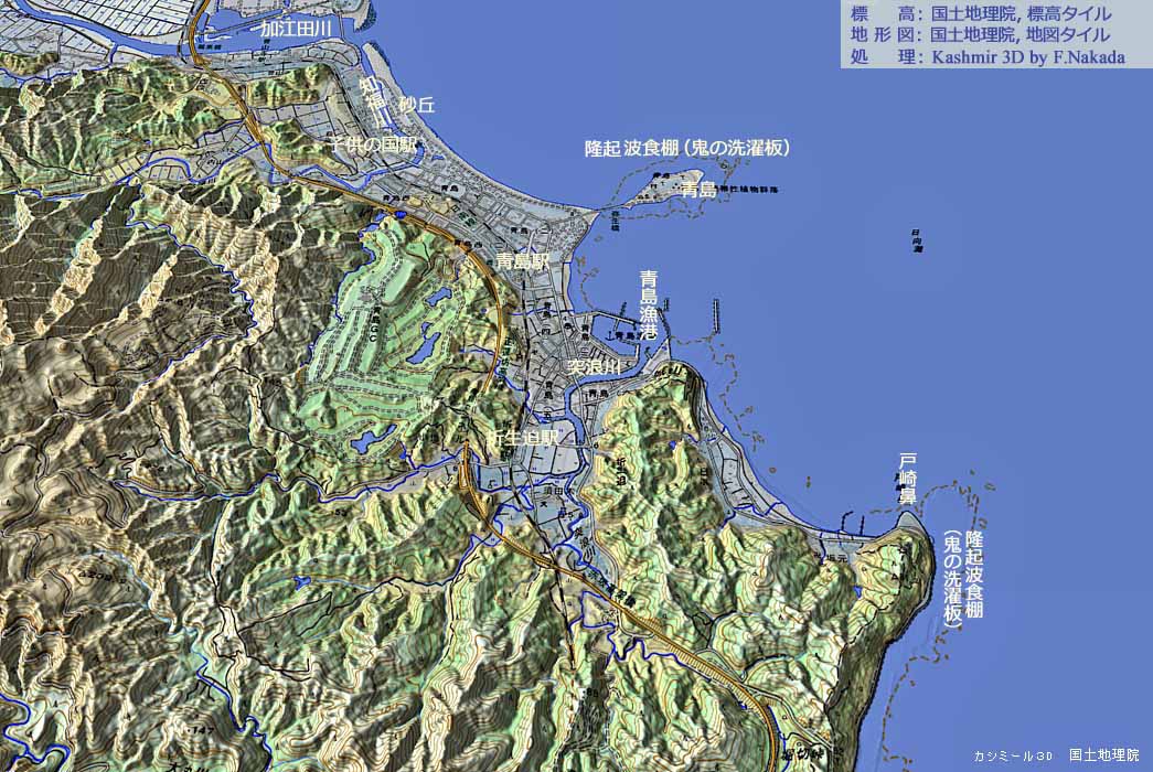| 三次元地形モデル:青島と日南海岸(北部) |