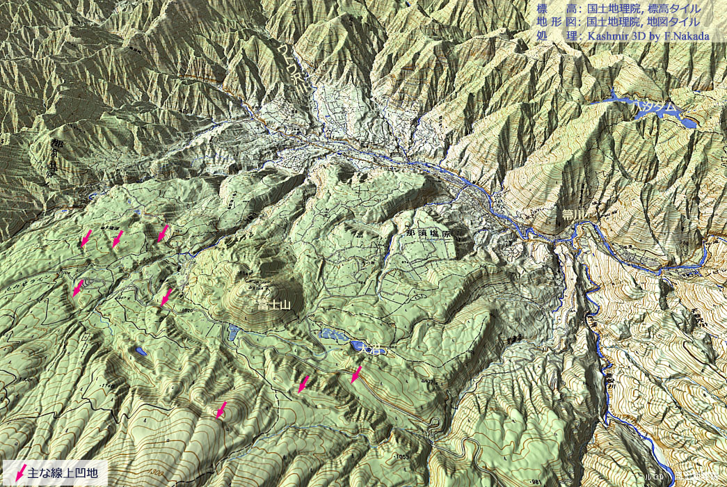 | 地形と地質の三次元イメージ : 高原火山群北面の塩原カルデラ |