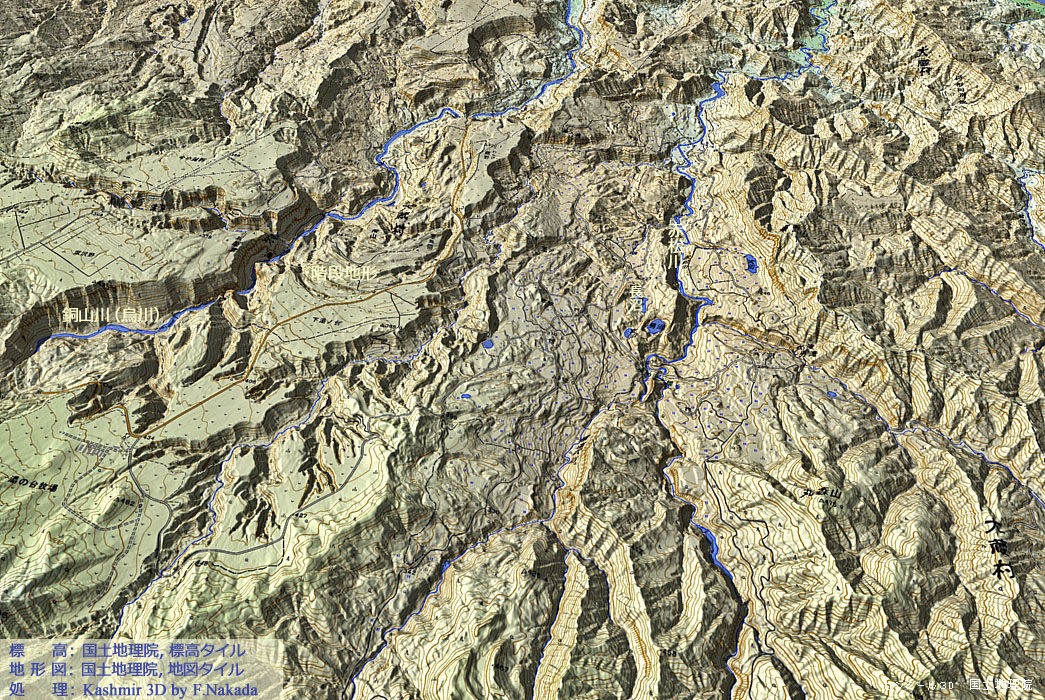 | 地形と地質の三次元イメージ : 山形県大蔵村四ヶ村(しかむら) |