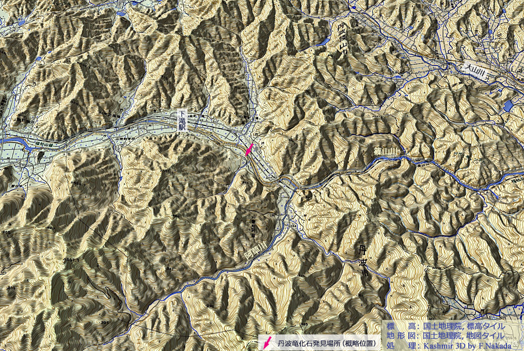 ![]() 画像出典: 丹波地域恐竜化石フィールドミュージアム推進協議会 > 丹波竜の化石が発見された発見地へ続く道を行く!! 注:画像は外部サイトから転送しています。著作権に留意してください。 |