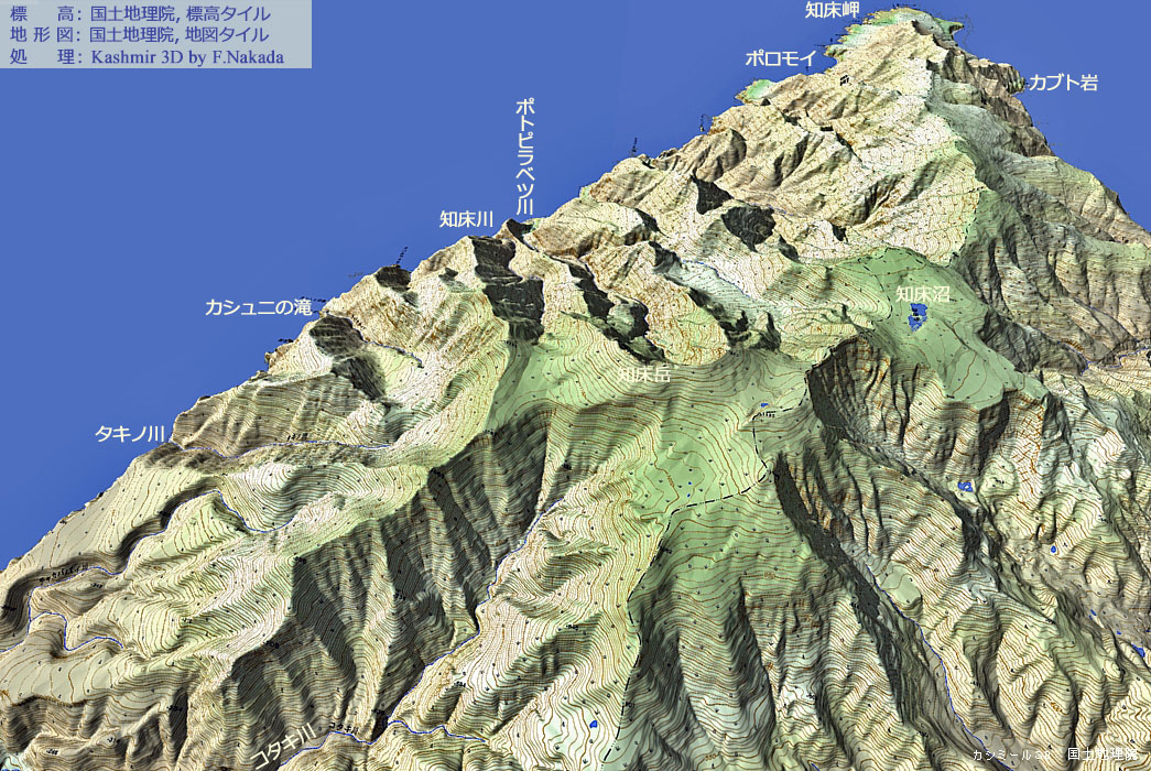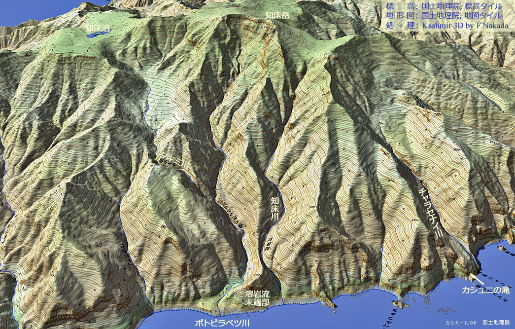 | 地形の三次元イメージ : 知床岳と知床半島西海岸 |