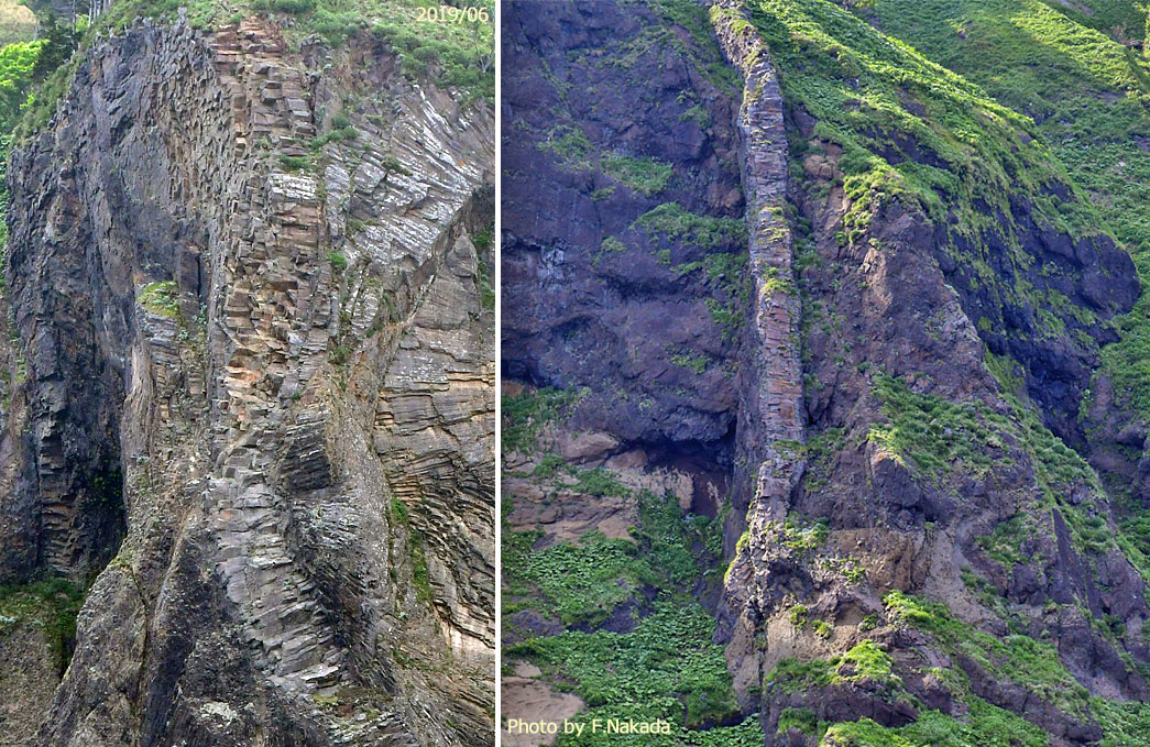 | 北海道:知床半島羅臼町,観音岩付近の地層境界など |