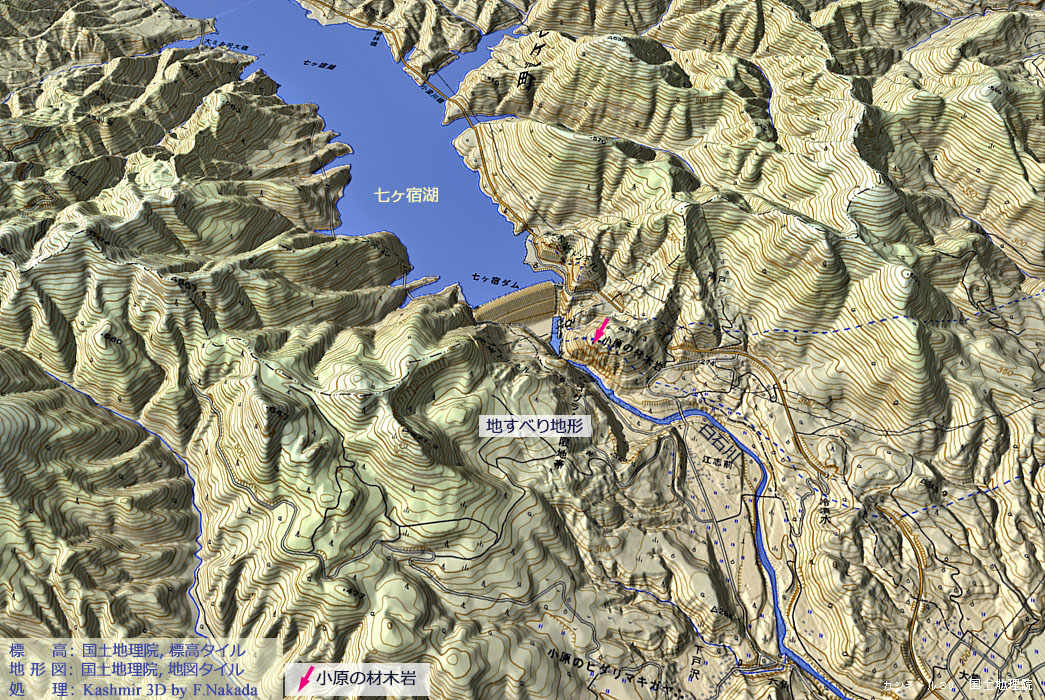 | 地形と地質の三次元イメージ : 旧七ヶ宿町小原地区 |