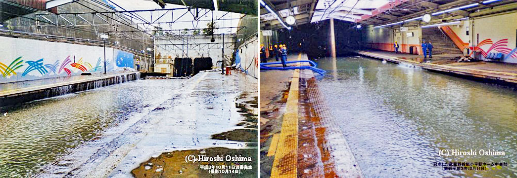 | 東京都:豪雨による新小平駅隆起(水没)災害 |