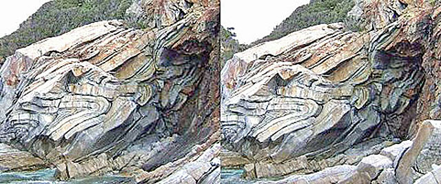 | 投稿者によるステレオ露頭写真とその説明 : フェニックス褶曲 |