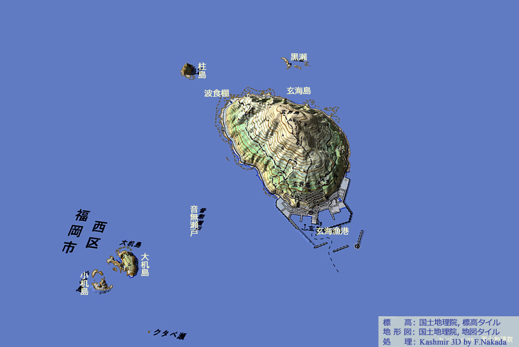 | 地形と地質の三次元イメージ : 玄界島[事務局作成] |