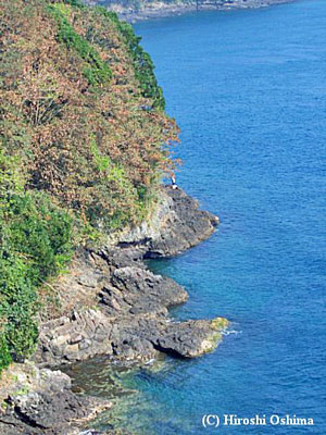 ![]() 長島側の橋脚近くの海岸線部の露頭 |