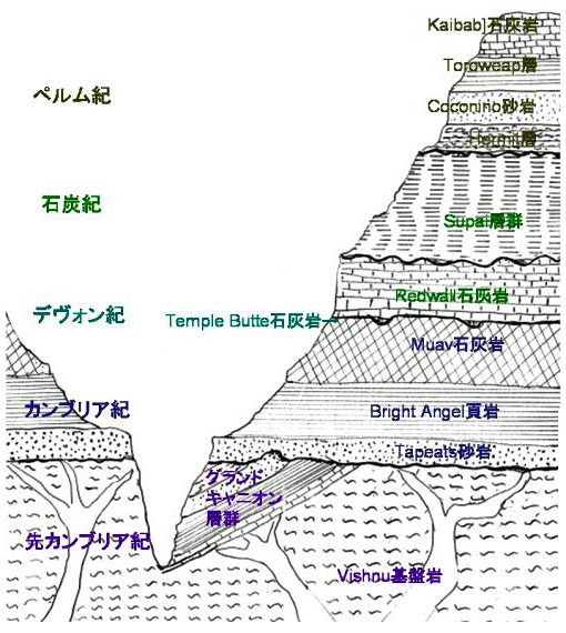 | 投稿者による地質層序とその説明 : グランドキャニオンの模式地質断面図 | |