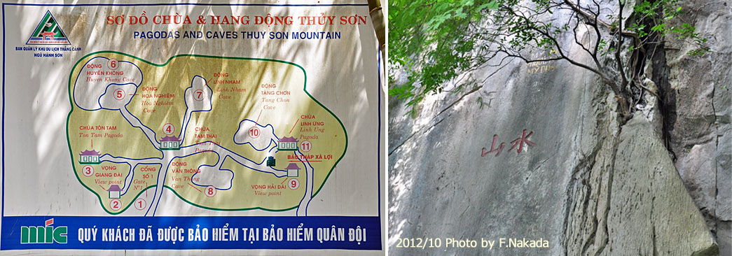 ![]() (左)五行山の案内板。 (右)五行山への登山道にある「山水」のレリーフ。 やはり,ここも中国の文化圏なのだ,と知らされます。 |