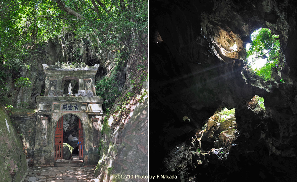 ![]() (左)ホアギエム(Hoa Nghiem)洞窟の入り口。 (右) 案内板⑥の洞窟。 ベトナム戦争で,米軍が投下した爆弾により空いた穴です。 |