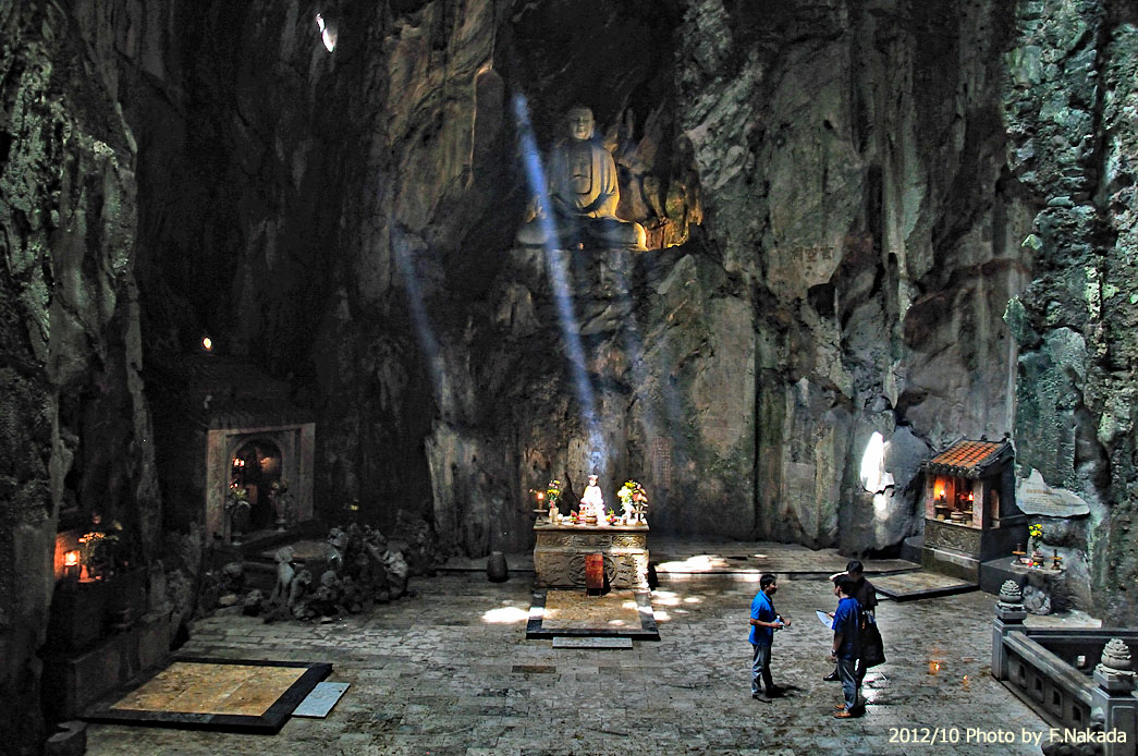 ![]() ベトナム,ダナン市の郊外に屹立するマーブルマウンテン(五行山)。 周囲には数多くの大理石の工房と販売店が並んでいます。 |
