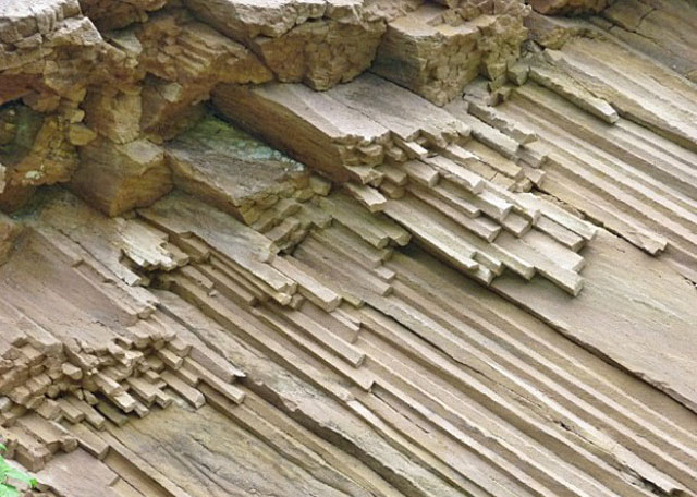 ![]() 男岩は流紋岩の柱状節理が発達しています。 |
