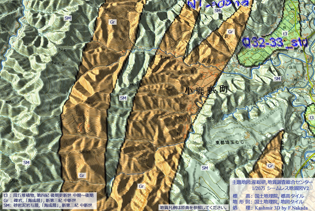 ![]() ![]() 20万分の1 シームレス地質図(出典,下記) |