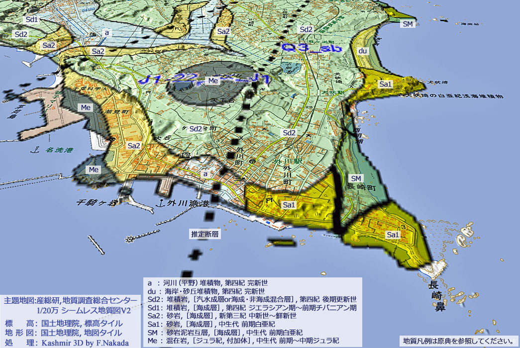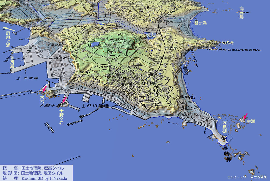 - 犬岩・千騎ケ岩のそばの岬「犬若岬」は,山地以外では肉眼で富士山を観察できる最東端といわれており,伊能忠敬が全国を測量した際,測量の誤差を補正するために,1801年にここで富士山を観測しました。