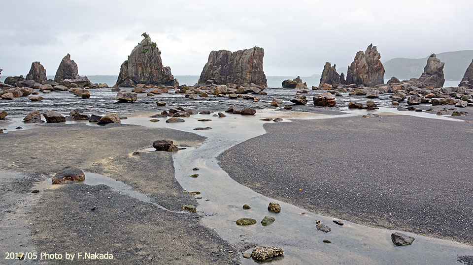 - また,橋杭岩に転がっている岩の中には,岩のそそり立つところからかなり遠くの「波食棚」の上にまで転がっているものもあります。