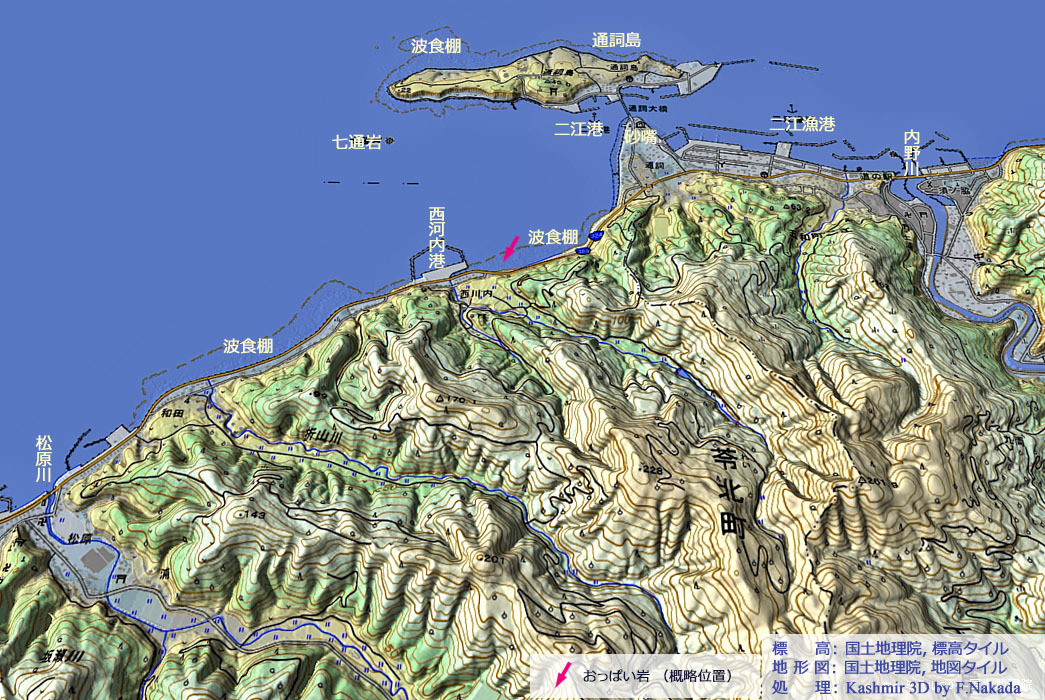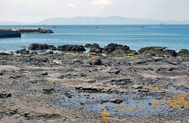 - 「おっぱい岩」は,天草下島北岸の波食棚の上に転がっています。