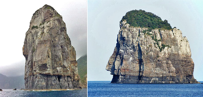 ![]() 海上から見たナポレオン岩。 (左)正面。(右)側面。 |