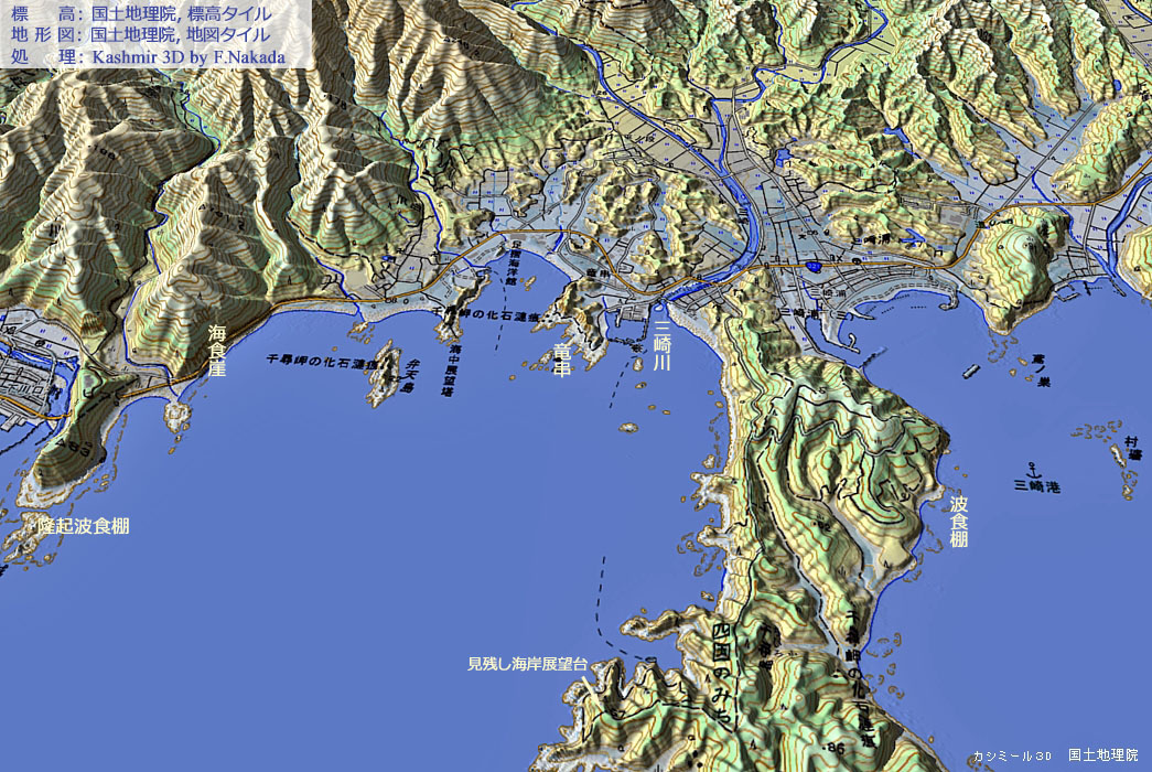 ![]() 見残し海岸展望台(地形図参照)から見た竜串海岸(その1)。 |