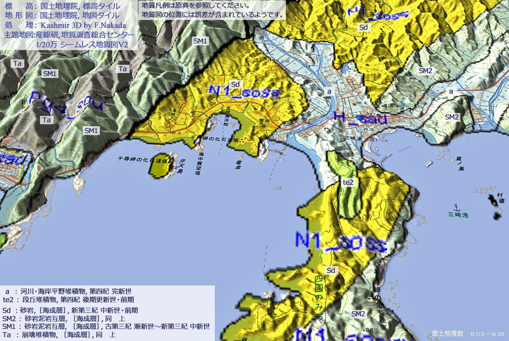 ![]() ![]() 20万分の1 シームレス地質図(出典,下記) |