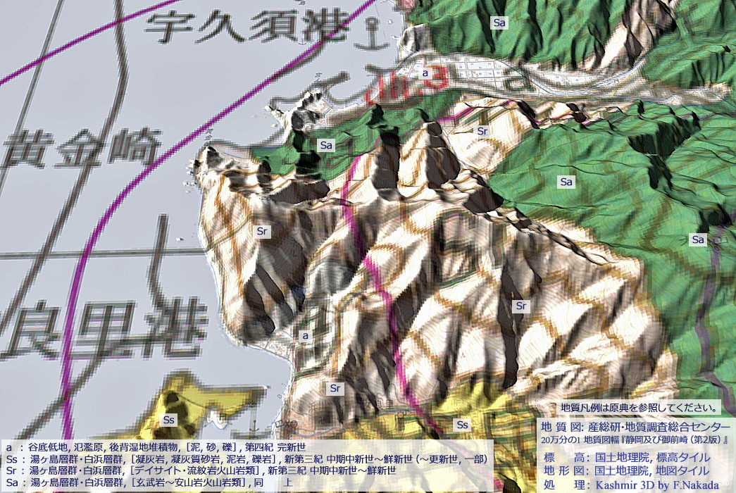 ![]() ![]() 20万分の1地質図幅『静岡・御前崎(第2版)』(出典,下記) |