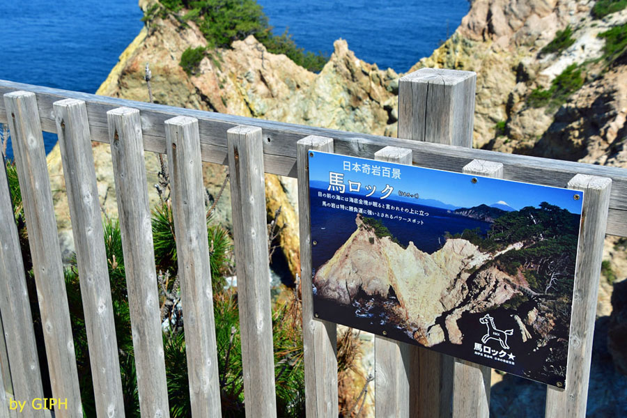 ![]() 展望台には,「日本の奇岩百景」の登録パネルが掲示されています。 |