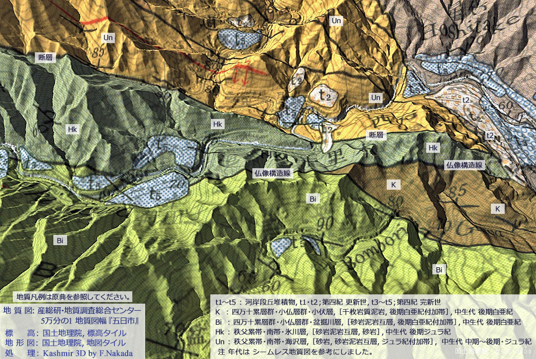 ![]() ![]() 5万分の1地質図幅『五日市』(出典,下記) |