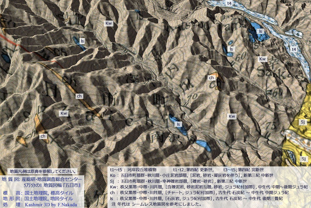 ![]() ![]() 5万分の1地質図幅『五日市』(出典,下記) |