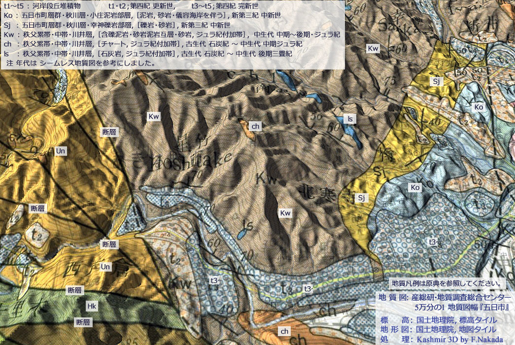 ![]() ![]() 5万分の1地質図幅『五日市』(出典,下記) |