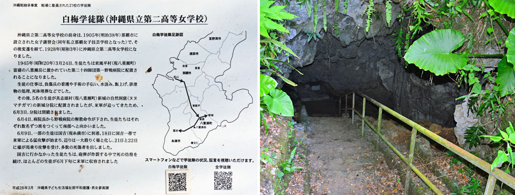 ![]() (左)沖縄県による説明版。 (右)壕の坑口。 |