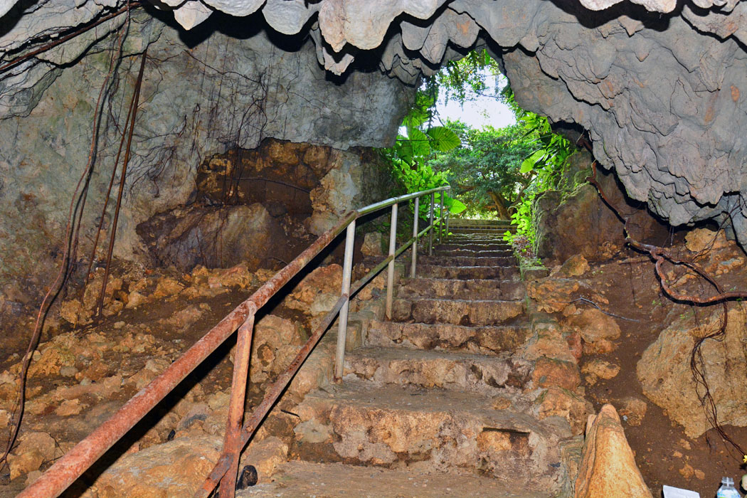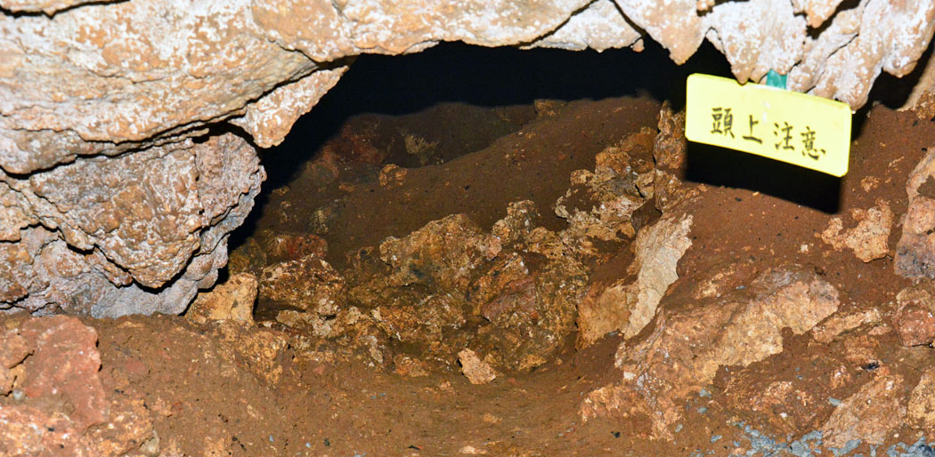 ![]() 高さは約1m。 殆ど腹ばいにならないと入れません。石灰岩なので空気は通ったでしょうが,奥では,灯りが無いと隣の人の顔もわからなかったでしょう。 |