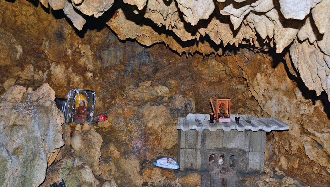![]() 坑口の階段を降りきったところにある祭壇。 |
