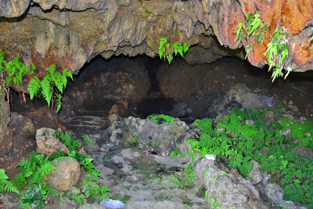 ![]() アンガーの入口付近。「ガー」とは井戸のことです。昔は貴重な水源だったことがわかります。 左端に文字の彫られた石塔らしきものがありますが,調査当時は気づきませんでした。 |