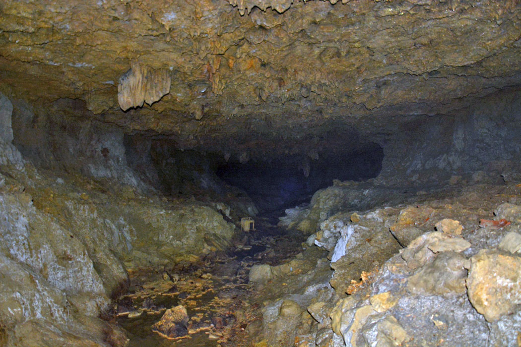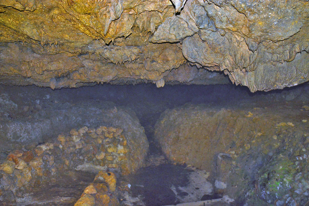 ![]() 更に奥を撮影。 元々は,水の流れていた鍾乳洞だったと思われます。 |