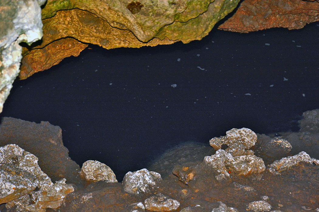 ![]() 上の拡大写真。 暗くてよくわかりませんが,泥が固まって 平坦になっているようにも見えます。 大雨の時,雨水が大量に入り込んでいることが想像されます。 |