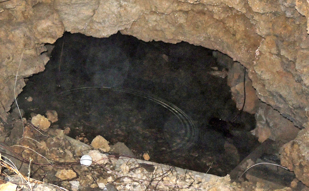 ![]() 文献の記述通り,壕の中には水が溜まっており,天盤から落ちた水滴による波紋が写っています。 |