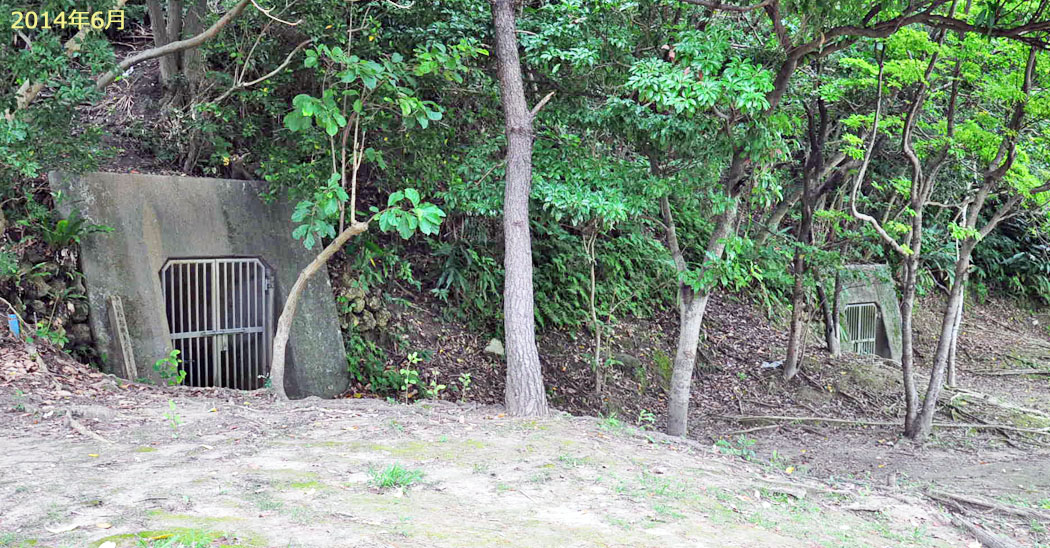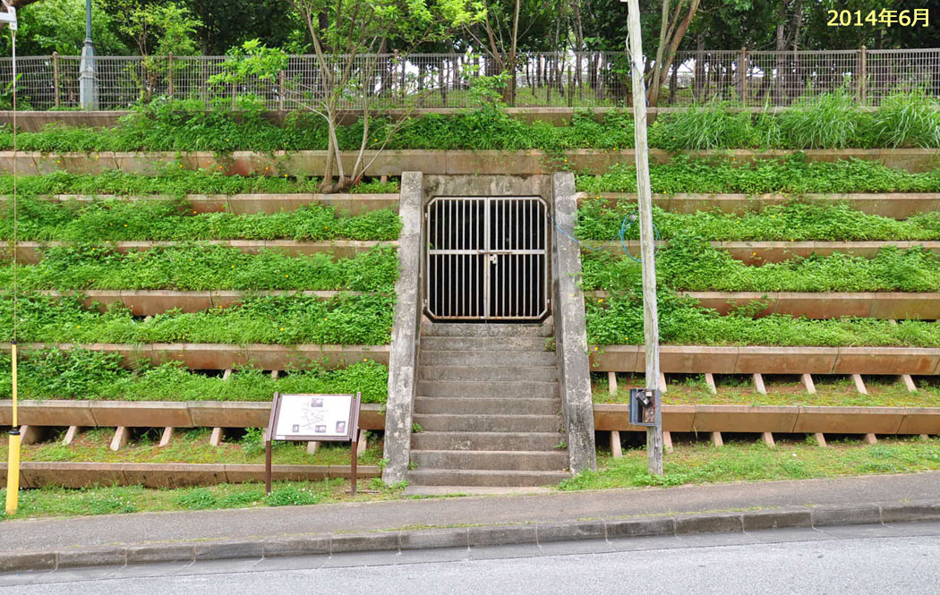 ![]() 壕の入り口(坑口①)。 那覇市の公園管理課によって常時施錠されています。 撮影:2014年06月。 |