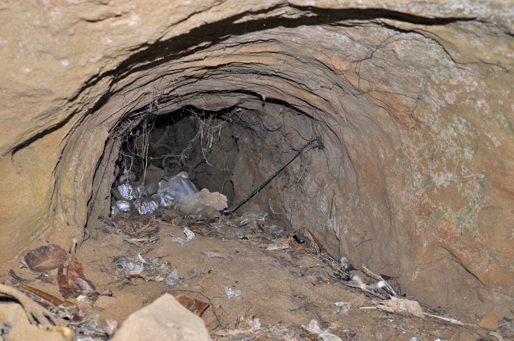 ![]() 反対側の坑口にはゴミが投げ入れられていました。 道路から離れた尾根の上なのに,です。 撮影:2012年12月。 |