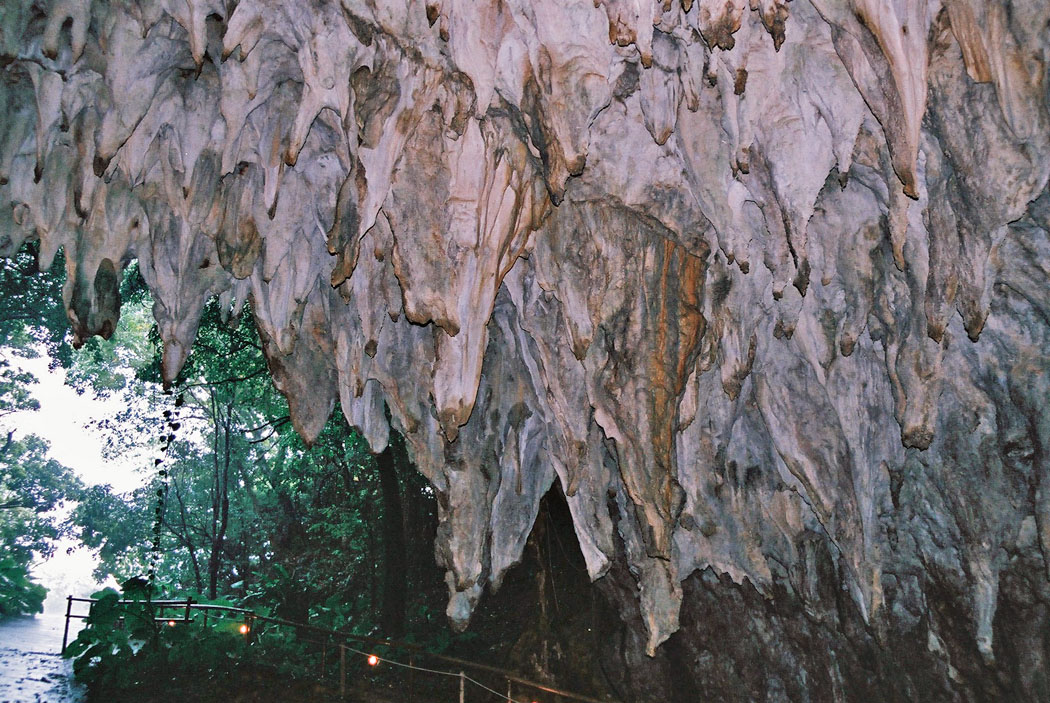 ![]() 前川ガンガラーの入口。 無数の鍾乳石がぶら下がっています。 撮影 : 2010年11月(全て)。 |