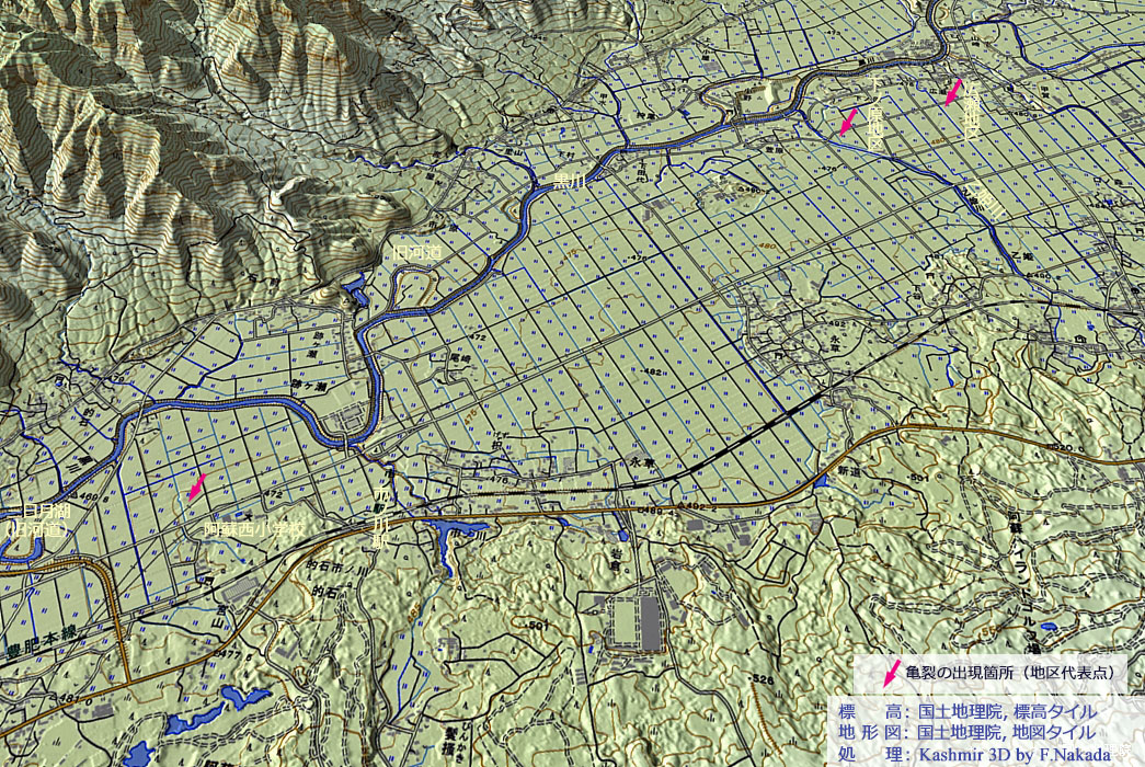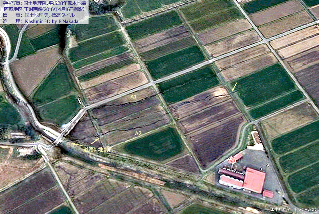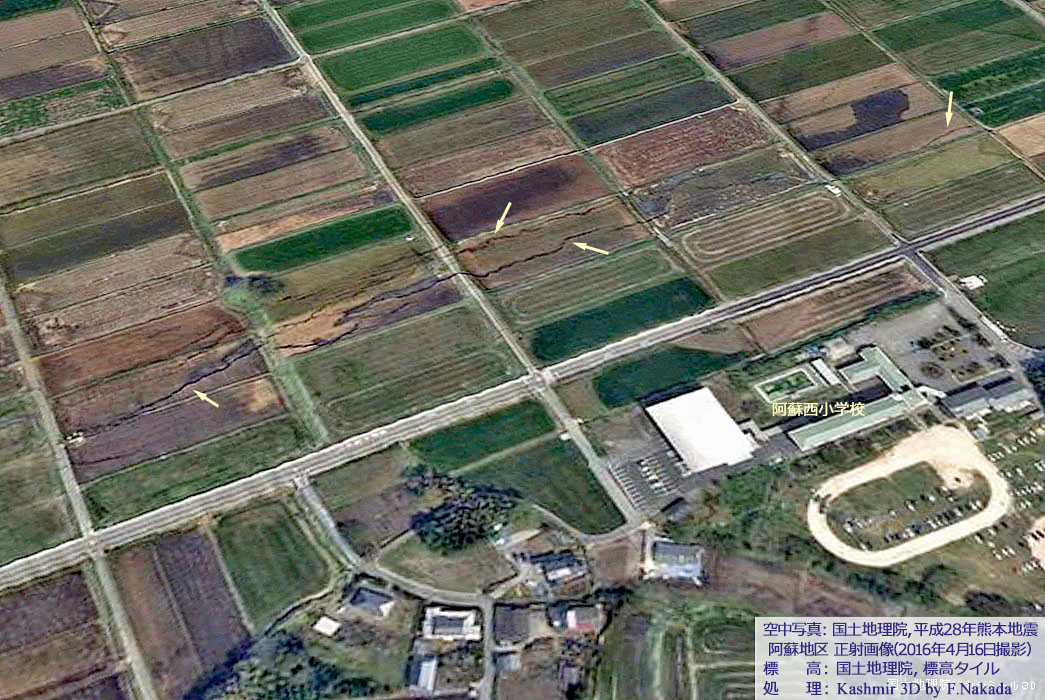 | 平成28年熊本地震:阿蘇市内に生じた大規模な地割れ |