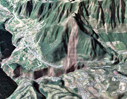 | 深層崩壊の例 平成23年(2011年)紀伊半島大水害(台風12号)で発生した「赤谷せき止め湖(奈良県五條市)」 |