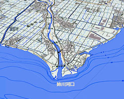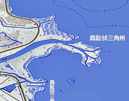 河口近くには,「網状流」が発達していることが多く,それが鳥の足に似ていることから名づけられたそうです。