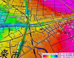 - 支川の排水を容易にするために「支川に堤防を築くと共に河床を嵩上げ」が行われると,支川は「天井川化」します(木津川中流・左右岸)。