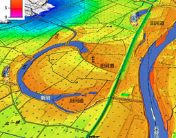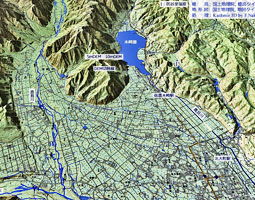 - 河跡湖(三日月湖):川が蛇行している時に,蛇行の短絡が発生したために,残された部分が湖となったものです。