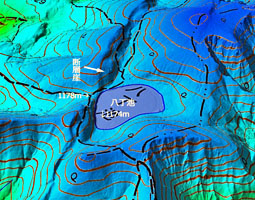 - ┗ 崩壊性堰止湖:地すべりや深層崩壊などによって,河谷や窪地(凹地)が堰き止められてできた湖で,「天然ダム」とも言います。