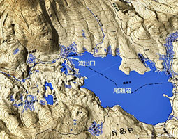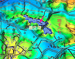 - ┣ 堆積性堰止湖:本流など大きな川が運んできた大量の土砂が,支流の合流部を堰き止めてできた湖です。