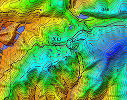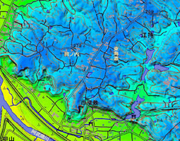 | 山間谷底平野 | 山間部の谷底に見られる平坦面で沖積錐・段丘面を含む。 上流末端部 | 3.いりの | |