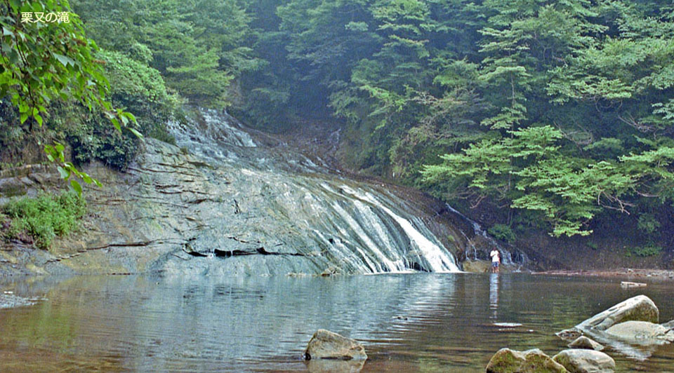 ![]() 傾斜の付いた凸凹の河床を,水が奔流となって流れ下っている状態を「渓流瀑」と呼びます。 既往資料では,「渓流瀑=滑滝」との記述もありますが,「平滑ノ滝」と「栗又の滝」が同じジャンルでは,ということで分けました。 |